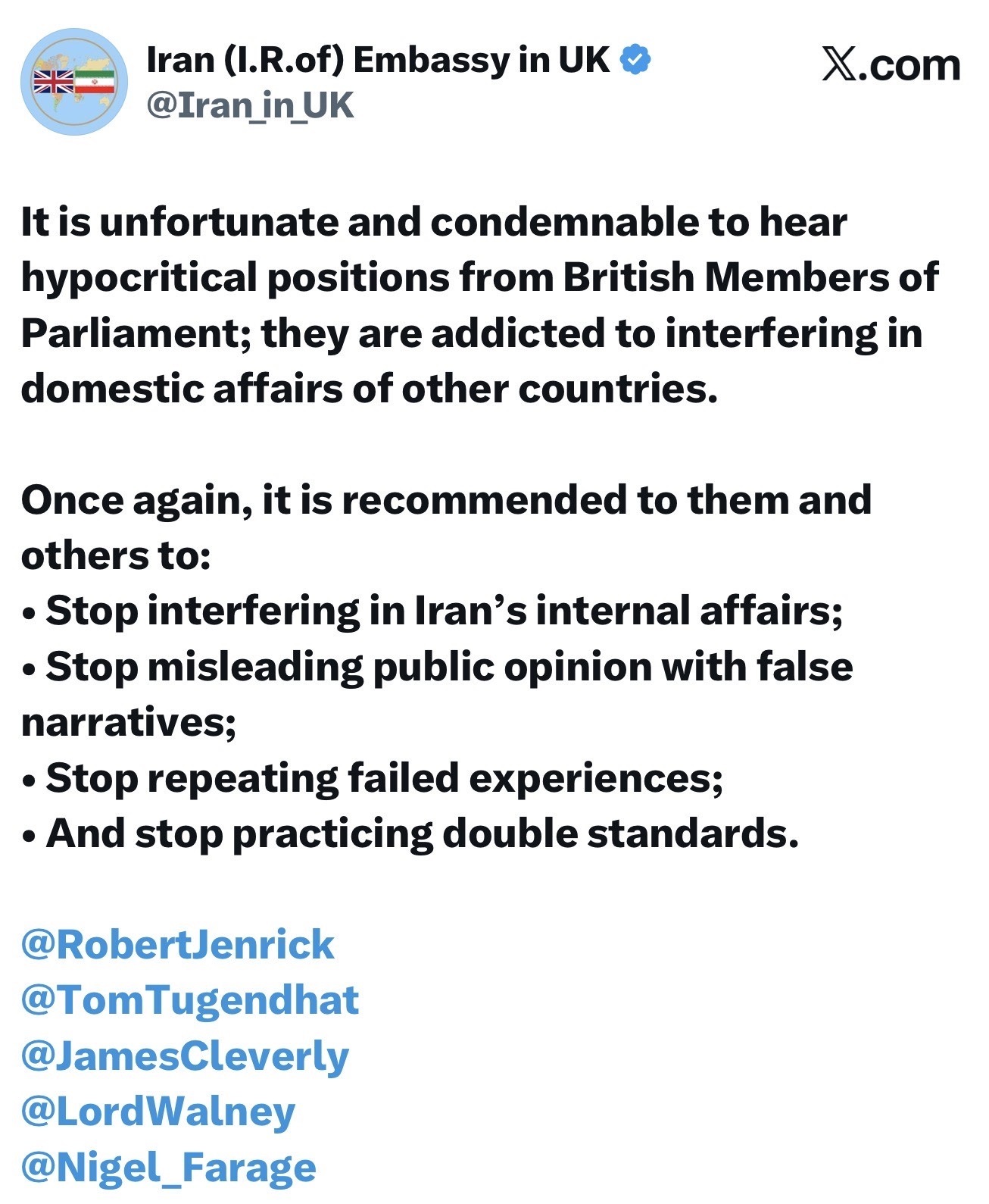 Iranian Embassy in London Condemned the Interference of British Members of Parliament in Iran's Internal Affairs